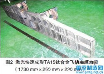 我国于1999年开始金属零件的激光快速成形技术研究,在国家“863”、“973”计划、国家自然科学基金重点项目等的大力支持下,集中开展了镍基高温合金及多种钛合金的成形研究,形成了多套具有工业化示范水平的激光快速成形系统和装备;掌握了金属零件激光快速成形的关键工艺及组织性能控制方法,所成形的TC4、TA15、TA12等钛合金及Inconel 718合金的力学性能均达到或超过锻件的水平[16-18],为该技术在上述材料零件的直接制造方面奠定了基础;近年来,我国在飞机钛合金大型整体结构件的激光快速成形方面取得了重要突破,有效解决了激光快速成形钛合金大型整体结构件的变形开裂及内部质量控制两大技术难题,通过对钛合金零件凝固组织的有效控制,所成形的飞机钛合金结构件的综合力学性能达到或超过钛合金模锻件,已通过装机评审并得到应用[3],图2是激光快速成形制造的TA15钛合金飞机主承力梁。尽管取得了突破性的进展,但激光快速成形技术在成形高性能金属零件方面仍然存在许多困难和问题。