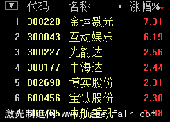 周四上午,3D打印概念相关个股表现出色,截至中午收盘时,板块平均上涨1.09%。个股方面,金运激光上涨7.31%,互动娱乐上涨6.19%。