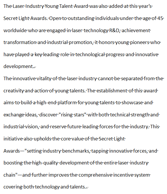 More notably, recipients of the Laser Industry Young Talent Award will be eligible for recommendation to the evaluation process of national-level awards. This initiative builds a higher-level development platform for young professionals in the industry, helping them achieve greater social value and contributions to the sector.
