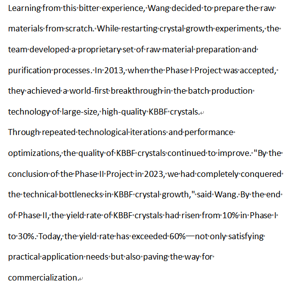 Just as Wang Xiaoyang was feeling utterly frustrated, in the second half of 2006, one furnace "performed admirably" for two consecutive cycles, producing KBBF crystals as thick as 3 millimeters. "It fully meets practical application requirements!" Wang sighed with relief, believing he had solved the crystal growth challenge.