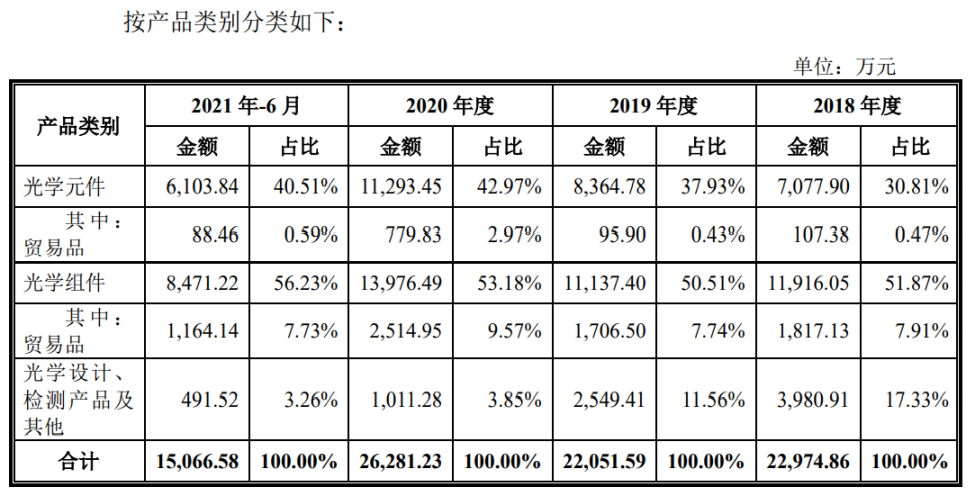 光学组件、光学元件为两大核心业务