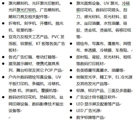 广告及标识设计、制作、耗材、工程公司,广告标识行业代理商、经销商、贸易商、大型企业及各类广告主(品牌商/零售商),公关、传媒公司、系统集成商、大型商场、酒店、物业管理公司、公共事业单位等。
