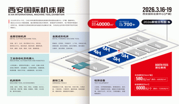 2026年3月16-19日,CMES华机展|西安国际机床展在西安国际会展中心(浐灞)重磅举办。展会以40000㎡展览规模,重点聚焦航空航天零部件、新能源汽车零部件、电子零部件等重点应用行业,现场展示应用端创新机床设备及先进解决方案,为机床企业布局中西部市场开创战略窗口。