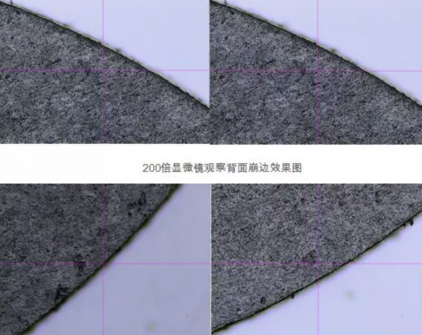 3.蓝宝石正面切割边缘效果较好,崩边尺寸的崩变量较背面崩边尺寸小,背面崩边量也控制在10μm以下。