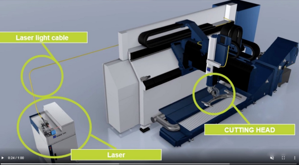 这里介绍三维激光切割加工设备的主要部件,主要为:床身,激光光纤线缆,激光光源,切割头。