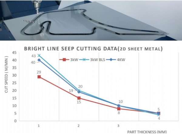 (2) 加工小于2 mm厚度的板料,3kw功率二合一光纤激光的切割速度快于4kw普通激光的切割速度。