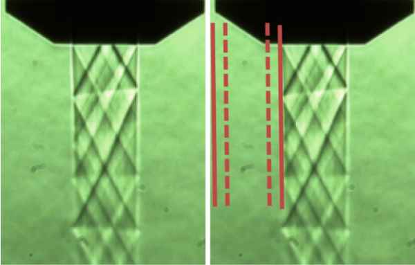 图5. 标准X-Blast 喷嘴技术(左图)和二合一环芯可调X-Blast 喷嘴技术气体消耗的界面图(右图)