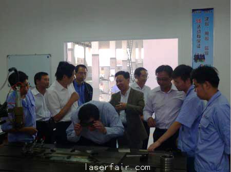 中国科学院半导体研究所所长李树深院士莅临指导参观中科四象激光科技有限公司厂区,亲自讲解由加工中心激光焊接的金属样件。