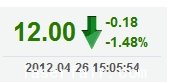| 今 开: | 12.11 | 成交量: | 3076手 | 振 幅: | 2.05% |