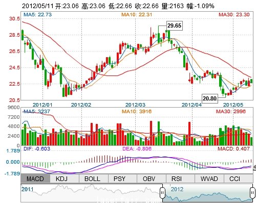 今 开: 23.06 成交量: 2162手 振 幅: 1.75%