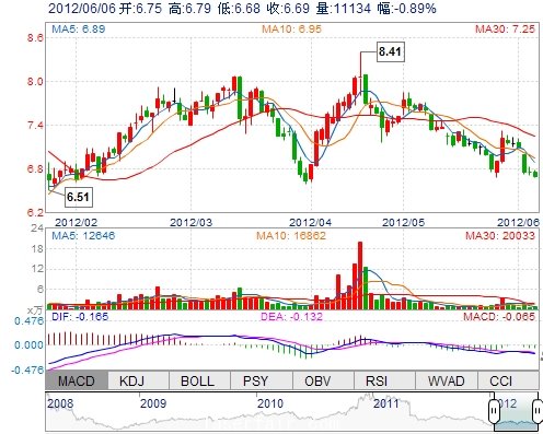 今 开: 6.75 成交量: 11134手 振 幅: 1.63% 最 高: 6.79 成交额: 748.41万 换手率: 0.41% 最 低: 6.68 总市值: 19.07亿 市净率: 3.05 昨 收: 6.75 流通市值:...