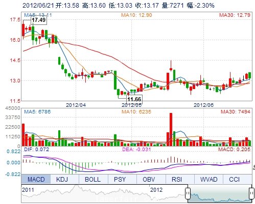 | 最 高: | 13.60 | 成交额: | 957.96万 | 换手率: | 3.77% |