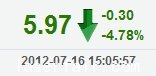 | 今 开: | 6.30 | 成交量: | 13241手 | 振 幅: | 5.42% |