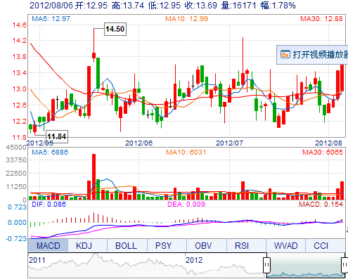 今 开: 12.95 成交量: 16170手 振 幅: 5.87% 最 高: 13.74 成交额: 2160.49万 换手率: 4.86% 最 低: 12.95 总市值: 9.17亿 市净率: 2.94 昨 收: 13.45 流通市...
