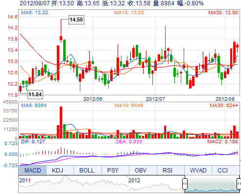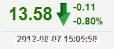 | 今 开: | 13.50 | 成交量: | 8963手 | 振 幅: | 2.41% |