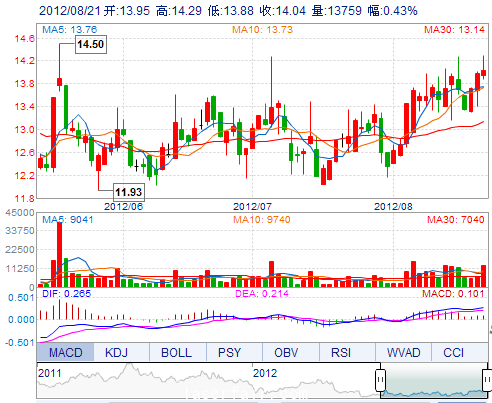 | 今 开: | 13.95 | 成交量: | 13758手 | 振 幅: | 2.93% |