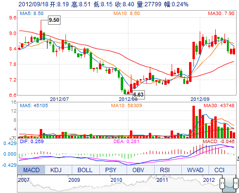 今 开: 8.19 成交量: 27798手 振 幅: 4.30% 最 高: 8.51 成交额: 2333.58万 换手率: 1.43% 最 低: 8.15 总市值: 16.74亿 市净率: 3.41 昨 收: 8.38 流通市值...