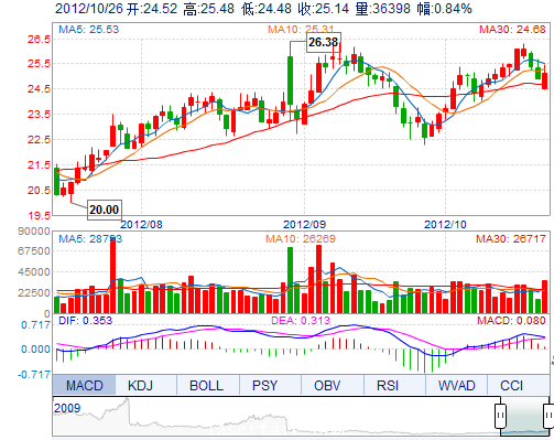 今 开: 24.52 成交量: 36398手 振 幅: 4.01% 最 高: 25.48 成交额: 9103.34万 换手率: 1.99% 最 低: 24.48 总市值: 74.83亿 市净率: 5.74 昨 收: 24.93 流通...