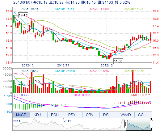 | 最 高: | 16.38 | 成交额: | 4898.16万元 | 换手率: | 9.36% |