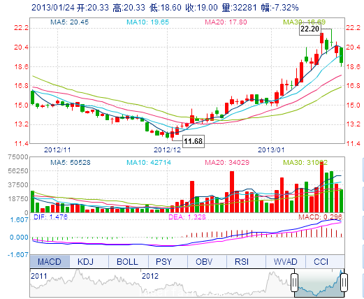 | 今 开: | 20.33 | 成交量: | 3.23万手 | 振 幅: | 8.44% |