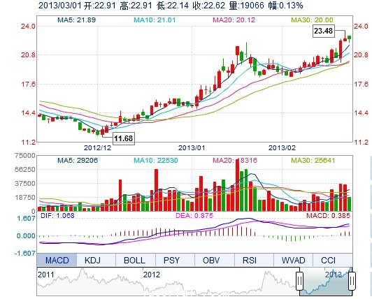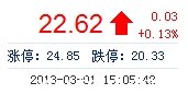 | 今 开: | 22.91 | 成交量: | 1.91万手 | 振 幅: | 3.41% |