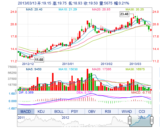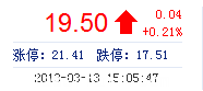 | 今 开: | 19.15 | 成交量: | 5675手 | 振 幅: | 4.21% |