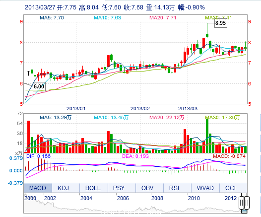 | 昨 收: | 7.75 | 流通市值: | 33.55亿 | 市盈率TTM: | 30.28 |