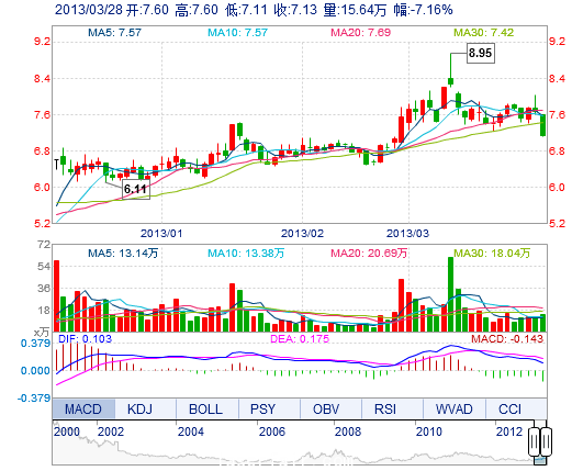| 今 开: | 7.60 | 成交量: | 15.64万手 | 振 幅: | 6.38% |