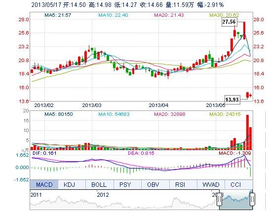| 今 开: | 14.50 | 成交量: | 11.59万手 | 振 幅: | 4.70% |
