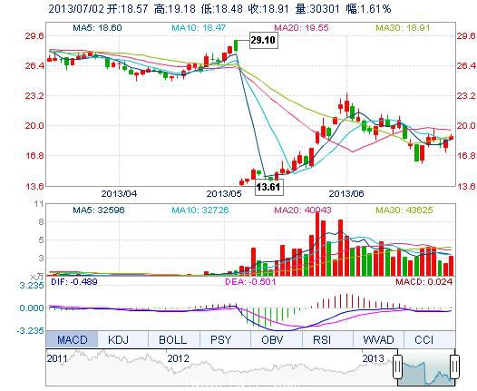 | 最 低: | 18.48 | 总市值: | 13.24亿 | 市净率: | 2.31 |