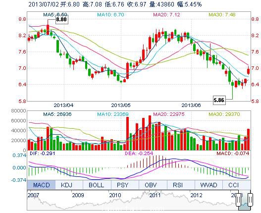 | 今 开: | 6.80 | 成交量: | 4.39万手 | 振 幅: | 4.84% |
