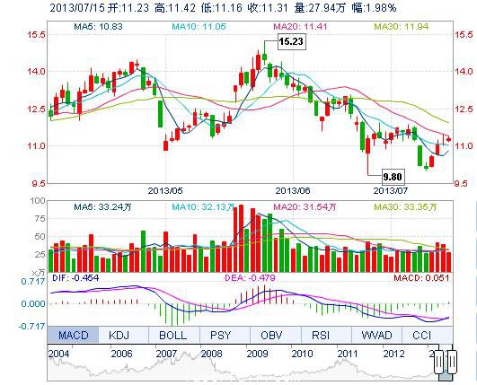 今开: 11.23 成交量: 27.94万手 振幅: 2.34% 最高: 11.42 成交额: 3.16亿元 换手率: 2.96% 最低: 11.16 总市值: 118.12亿 市净率: 3.41 昨收: 11.09 流通市值...