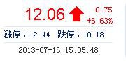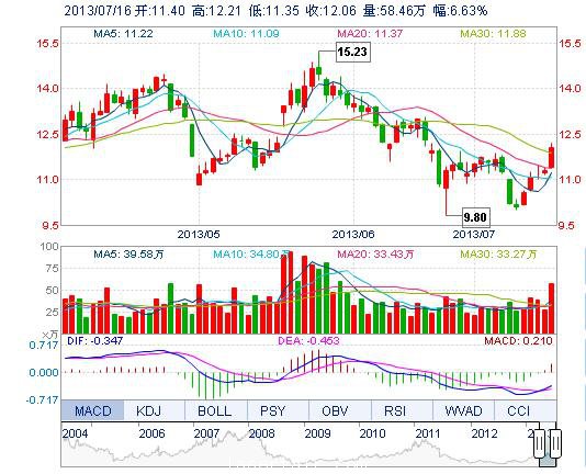 今开: 11.40 成交量: 58.46万手 振幅: 7.60% 最高: 12.21 成交额: 6.88亿元 换手率: 6.18% 最低: 11.35 总市值: 125.95亿 市净率: 3.63 昨收: 11.31 流通市值...