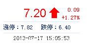 | 今 开: | 7.12 | 成交量: | 9.87万手 | 振 幅: | 5.20% |