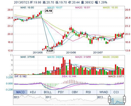 今开: 19.98 成交量: 3.69万手 振幅: 4.96% 最高: 20.70 成交额: 7474.34万元 换手率: 17.17% 最低: 19.70 总市值: 14.31亿 市净率: 2.50 昨收: 20.18 流通市...