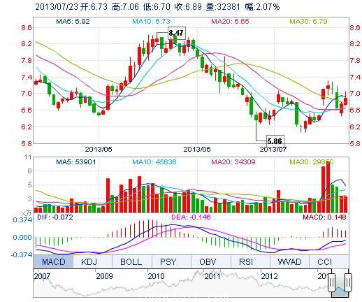 | 今 开: | 6.73 | 成交量: | 3.24万手 | 振 幅: | 5.33% |