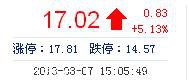 | 最 高: | 17.81 | 成交额: | 2.95亿元 | 换手率: | 24.91% |