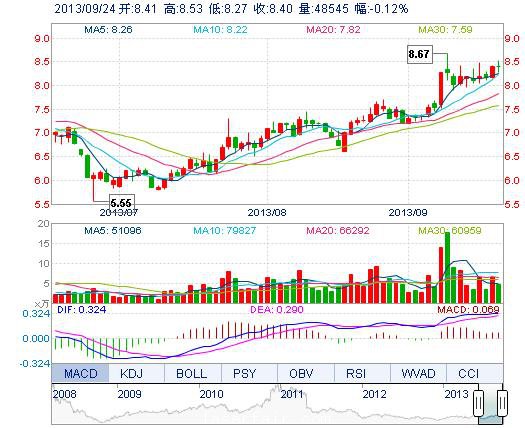 | 今 开: | 8.41 | 成交量: | 4.85万手 | 振 幅: | 3.09% |