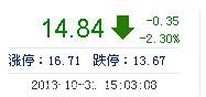 | 昨 收: | 15.19 | 流通市值: | 25.77亿 | 市盈率TTM: | -- |