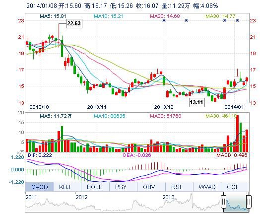 今开: 15.60 成交量: 11.29万手 振幅: 5.89% 最高: 16.17 成交额: 1.78亿元 换手率: 16.48% 最低: 15.26 总市值: 21.53亿 市净率: 6.62 昨收: 15.44 流通市值...