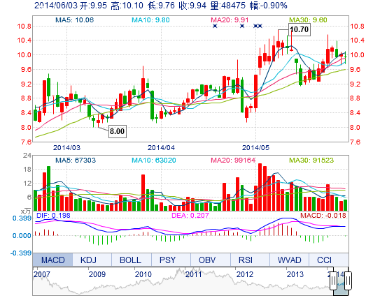 | 最 高: | 10.10 | 成交额: | 4806.16万元 | 换手率: | 2.43% |