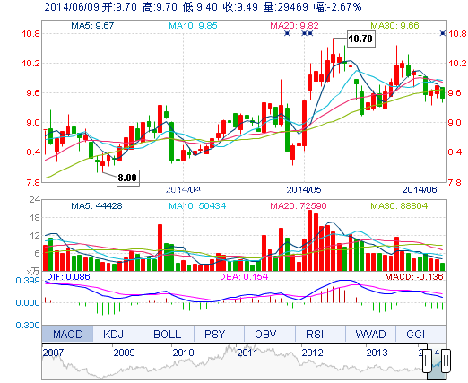 | 今 开: | 9.70 | 成交量: | 2.95万手 | 振 幅: | 3.08% |