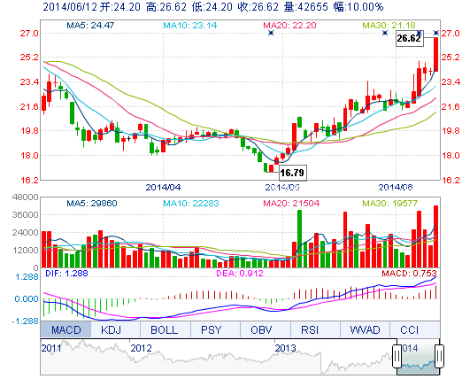 | 今 开: | 24.20 | 成交量: | 4.27万手 | 振 幅: | 10.00% |