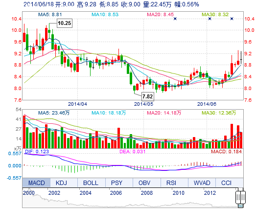 | 最 高: | 9.28 | 成交额: | 2.03亿元 | 换手率: | 2.52% |