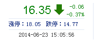 今开: 16.41 成交量: 11.03万手 振幅: 2.50% 最高: 16.66 成交额: 1.81亿元 换手率: 1.15% 最低: 16.25 总市值: 172.59亿 市净率: 4.68 昨收: 16.41 流通市值...