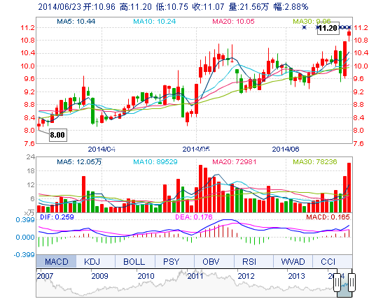 | 最 高: | 11.20 | 成交额: | 2.36亿元 | 换手率: | 10.82% |