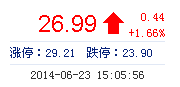 | 今 开: | 26.56 | 成交量: | 13.96万手 | 振 幅: | 2.98% |