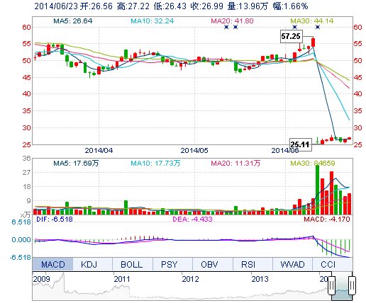 | 最 低: | 26.43 | 总市值: | 176.74亿 | 市净率: | 4.84 |