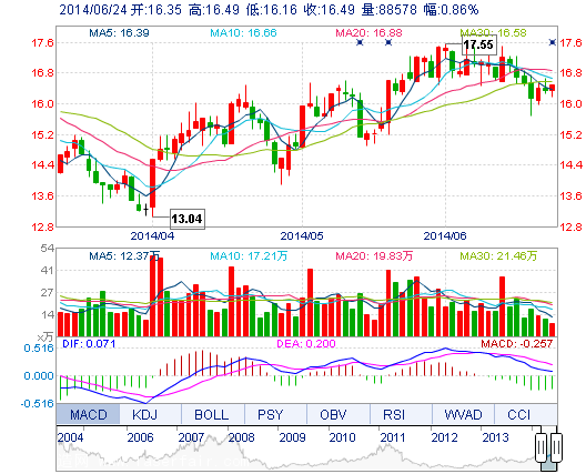 | 今 开: | 16.35 | 成交量: | 8.86万手 | 振 幅: | 2.02% |