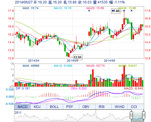 | 今 开: | 16.20 | 成交量: | 4.15万手 | 振 幅: | 2.10% |